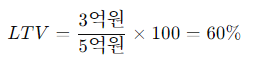 이 경우 LTV는 60%입니다. 이는 담보 자산(아파트) 가치의 60%에 해당하는 금액을 대출받았다는 의미입니다.