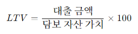 - 대출 금액이 담보 자산 (본인 아파트 등)의 가치에 대해 어느 정도 비율을 차지하는지를 나타내는 지표입니다.