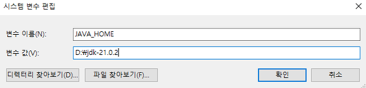 시스템 환경 변수 편집 -> 시스템 변수 새로 만들기